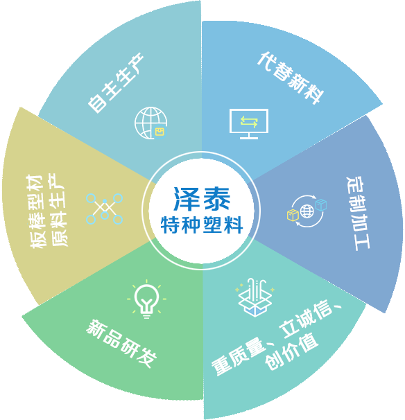 溫州澤泰特種塑料有限公司專業致力于特種工程塑料產品的擠出、注塑、模壓及機械加工,特別在PEEK(聚醚醚酮)、 PI(聚酰亞胺)行業有多年的生產加工經驗。專業生產耐磨自潤滑塑料原料、耐磨耐高溫塑料原料、鐵氟龍增強耐磨塑料、碳纖維增強塑料、導電防靜電塑料、PI原料、PPS原料、peek原料、PEI原料、高溫尼龍原料、PEEK板材、PEEK棒材、PEI板材、PPSU棒材、PPS板材、PPS棒材、PPS加纖、PEI加纖、PEEK加纖、防靜電peek原料、防靜電pps原料、耐磨pi顆粒、pps加碳纖維、peek加碳纖維、高溫尼龍等,為不同行業提供特種工程塑料成品零配件及半成品型材的研發(fā)、設計、生產一體化解決方案。